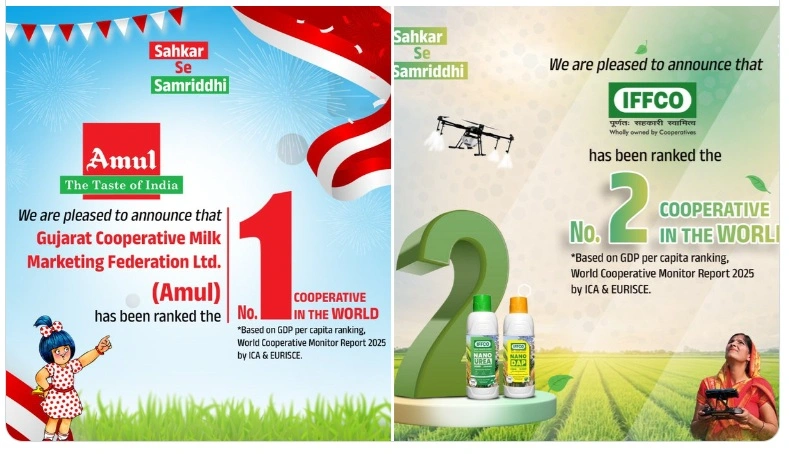 Gujarat Cooperative Milk Marketing Federation Ltd (GCMMF), the owner of Amul, secured the top position in a global ranking of cooperatives, followed by Indian Farmers Fertiliser Cooperative Ltd (IFFCO) in the second place.
