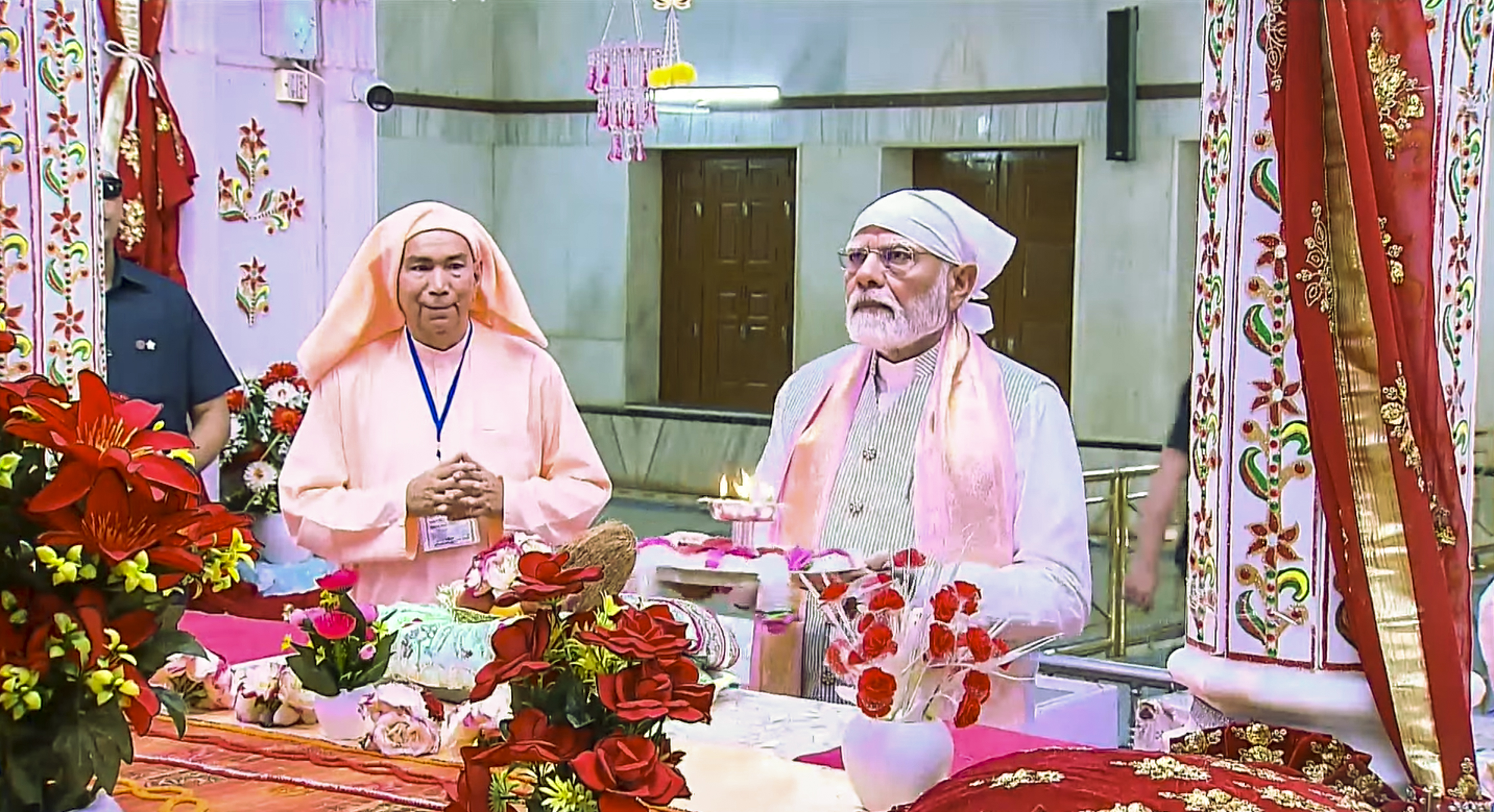 **EDS: THIRD PARTY** In this screenshot image from @Narendramodi via Youtube on Friday, April 11, 2025, Prime Minister Narendra Modi performs 'pooja' at Shri Anandpur Dham, in Ashoknagar, Madhya Pradesh. (@Narendramodi/YT via PTI Photo) (PTI04_11_2025_000209B) *** Local Caption ***
