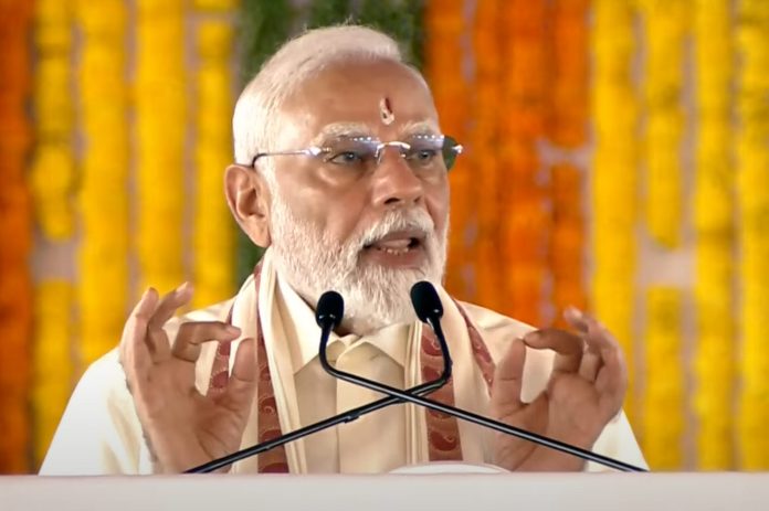 **EDS: SCREENSHOT VIA PTI VIDEOS** Rameswaram: Prime Minister Narendra Modi addresses during foundation stone laying and inauguration of development works, in Rameswaram, Tamil Nadu, Sunday, April 6, 2025. (PTI Photo)