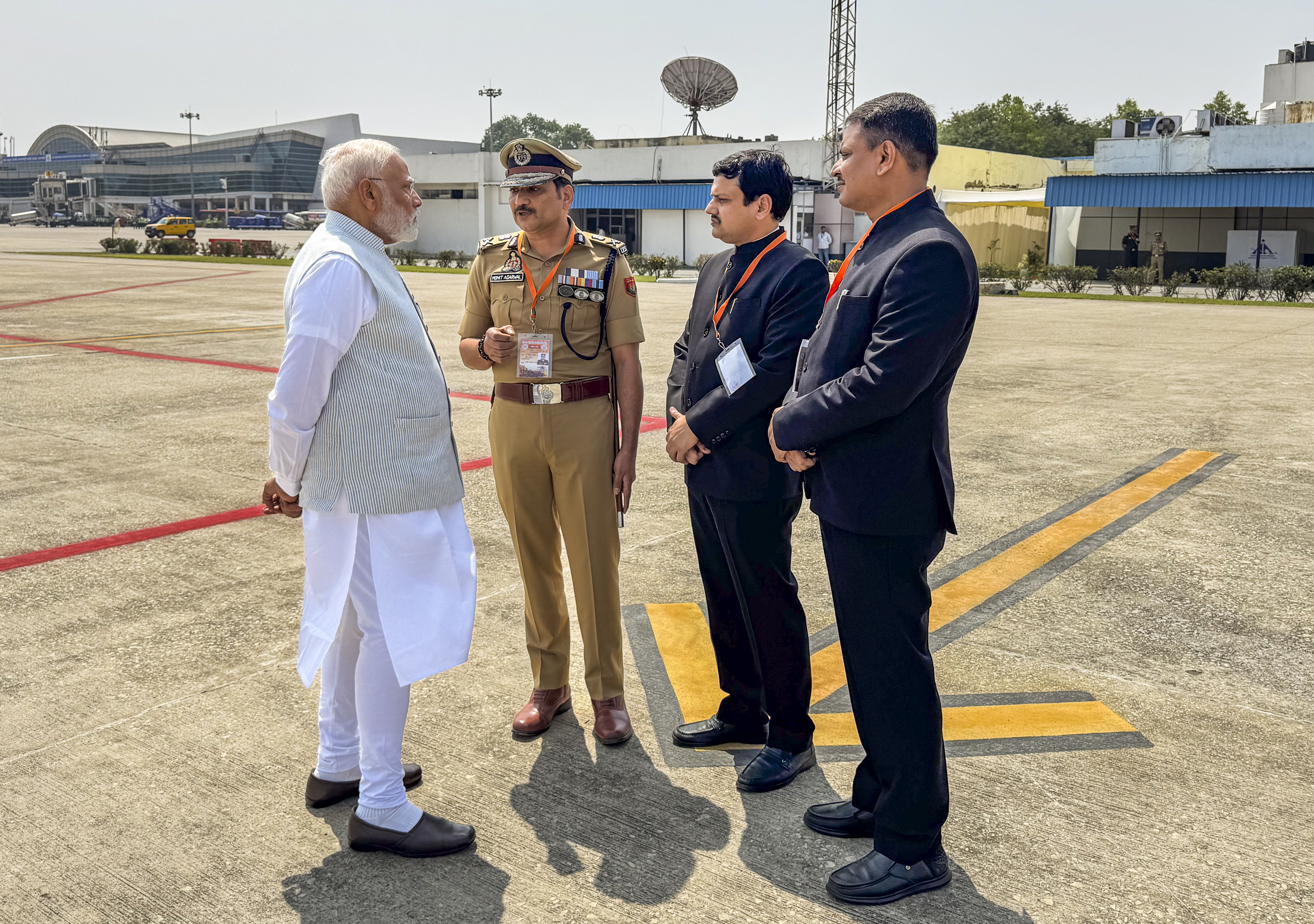 **EDS: THIRD PARTY** In this image provided by the UP Information Department, Prime Minister Narendra Modi inquires from the Police Commissioner, Divisional Commissioner and District Magistrate of Varanasi about the recent rape incident in the city, upon his arrival in Varanasi, Friday, Apr. 11, 2025. (UP Information Department via PTI Photo) (PTI04_11_2025_000051B) *** Local Caption ***