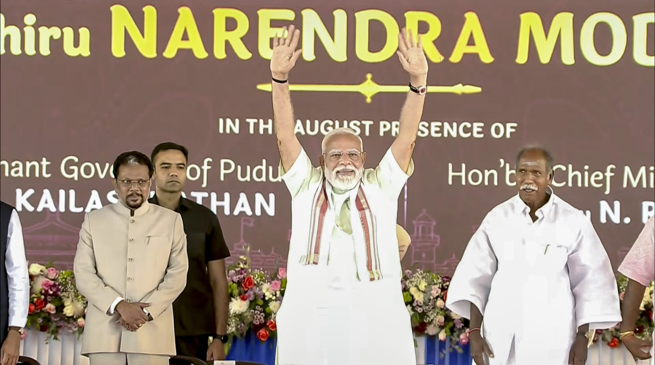 Puducherry, Mar 1 (PTI) Prime Minister Narendra Modi who arrived to a rousing reception in Puducherry on Sunday dedicated development projects worth over Rs 2,700 crore, aimed at strengthening infrastructure, urban services, industrial development, education, healthcare and sustainable growth in Puducherry.