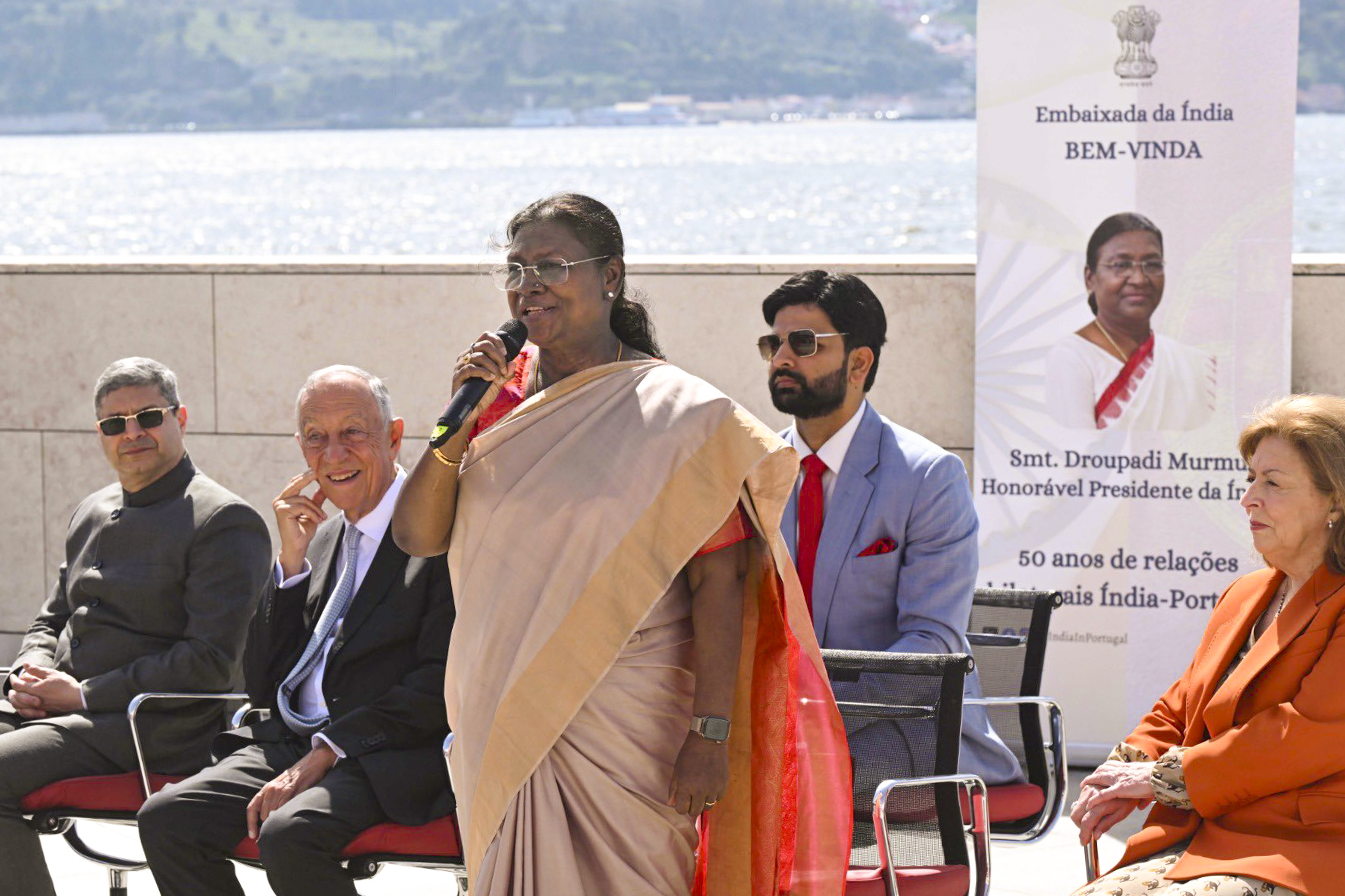 **EDS: THIRD PARTY IMAGE** In this image released by @MEAIndia via X on April 8, 2025, President Droupadi Murmu during an interaction with over 60 Indian doctoral & post-doctoral researchers working in various institutions and universities all across Portugal. (@MEAIndia on X via PTI Photo)(PTI04_08_2025_000507B)