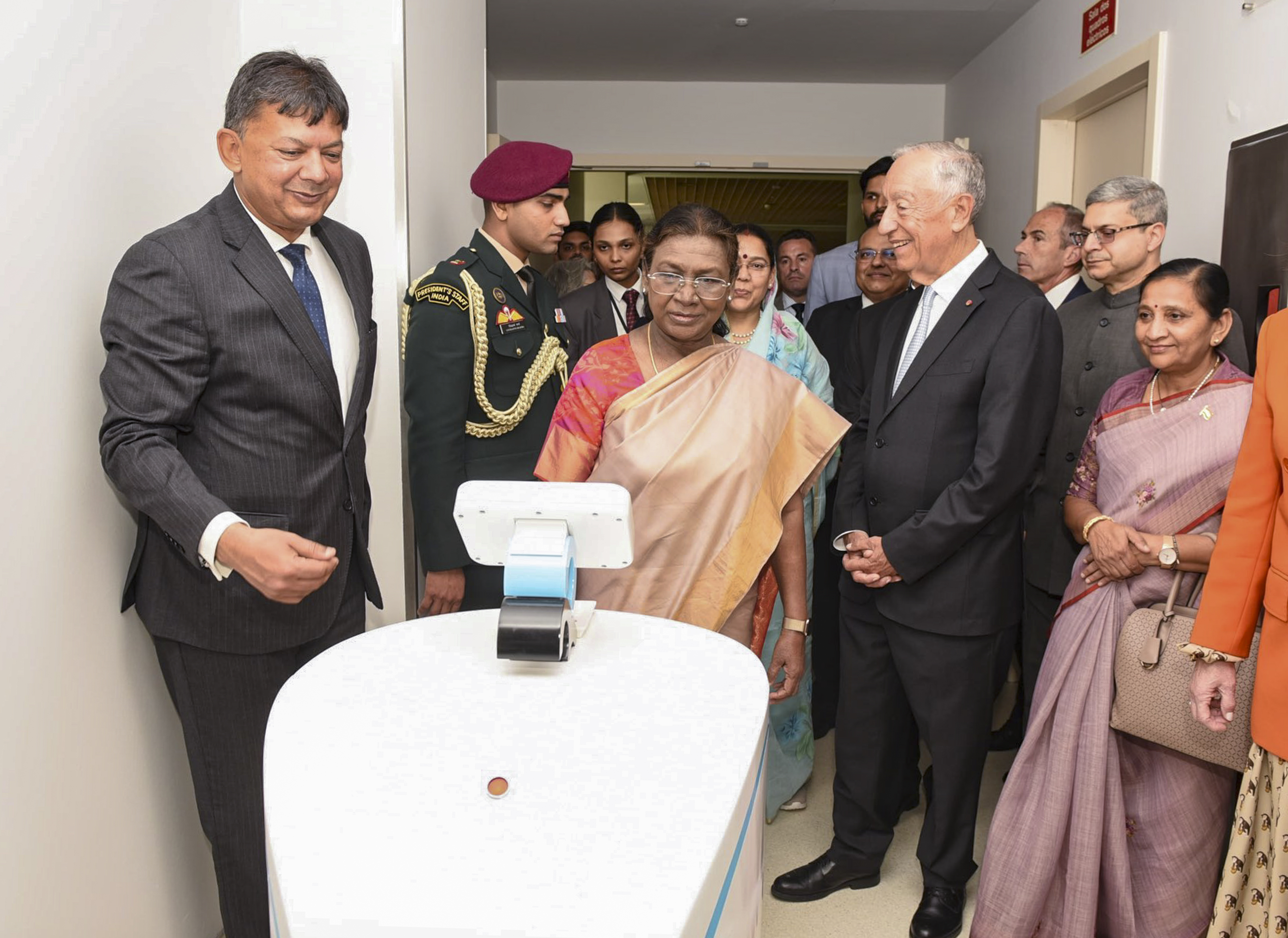 **EDS: THIRD PARTY IMAGE** In this image released by @MEAIndia via X on April 8, 2025, President Droupadi Murmu with Portuguese President Marcelo Rebelo de Sousa during a visit to the Champalimaud Foundation, in Lisbon, Portugal. (@MEAIndia on X via PTI Photo)(PTI04_08_2025_000502B)