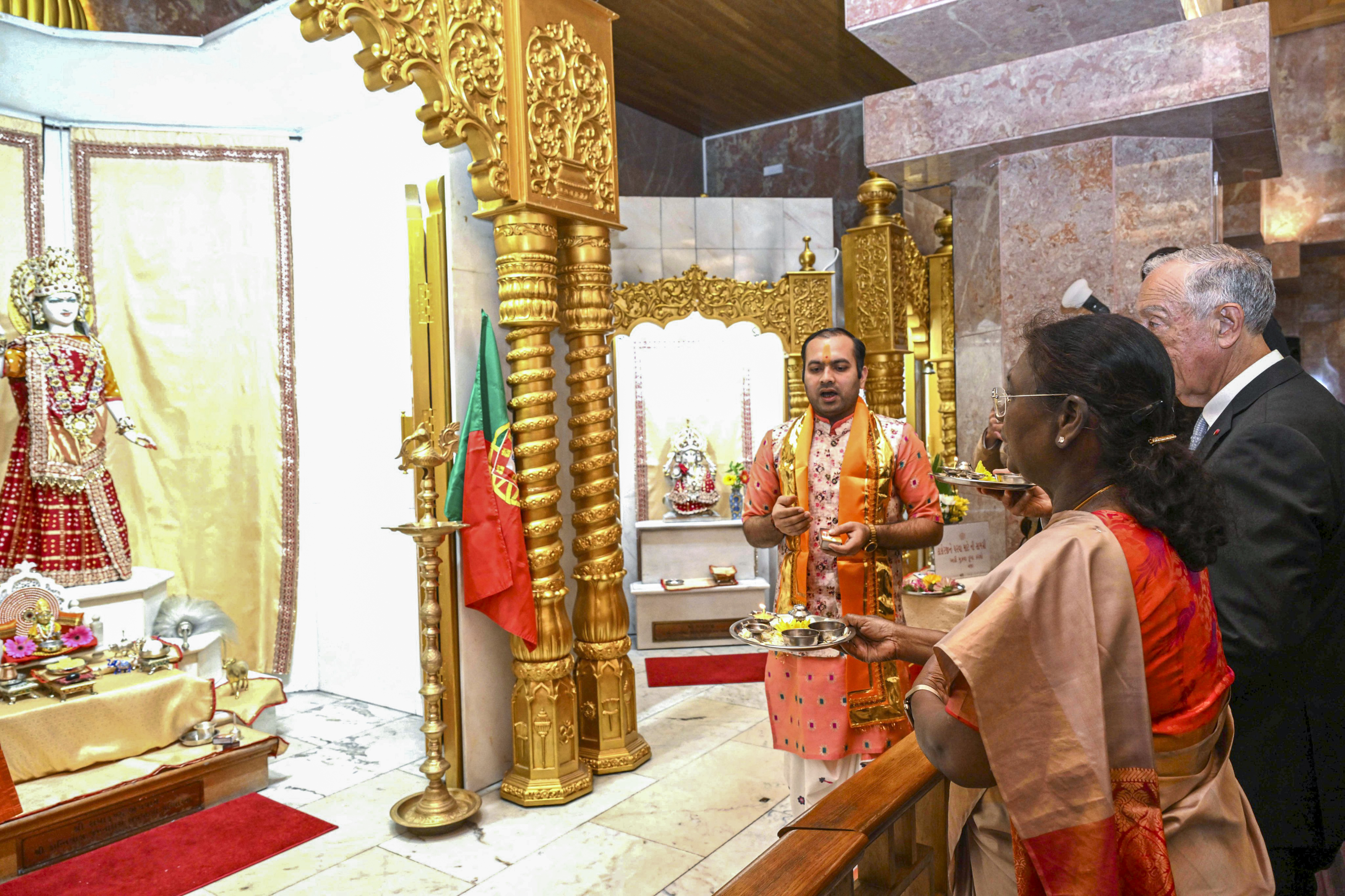 **EDS: THIRD PARTY IMAGE** In this image released by @rashtrapatibhvn via X on April 8, 2025, President Droupadi Murmu offers prayers at the Radha-Krishna Temple in Lisbon, Portugal. (@rashtrapatibhvn on X via PTI Photo)(PTI04_08_2025_000616B)