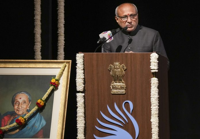 Bengaluru: Vice President CP Radhakrishnan speaks during the silver jubilee celebrations and inauguration of a new incubation centre, in Bengaluru, Wednesday, Jan. 21, 2026. (PTI Photo/Shailendra Bhojak)(PTI01_21_2026_000195B)