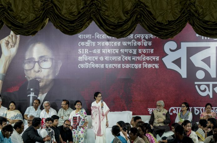 “BJP has stooped so low that they are using President Droupadi Murmu to malign the state,” the CM said at a protest site in Kolkata.