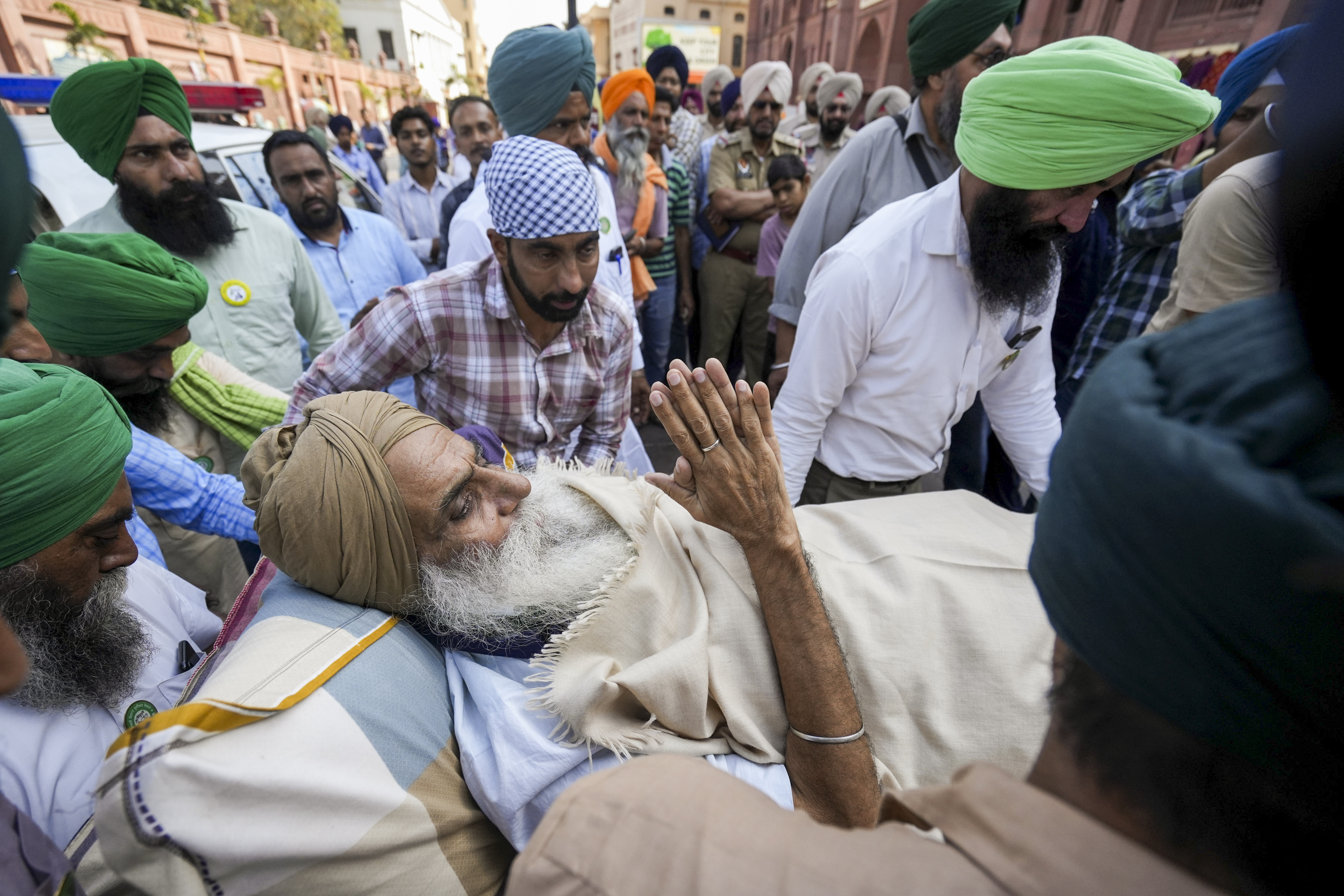 **EDS: RPT ADDS DETAILS** Amritsar: Farmer leader Jagjit Singh Dallewal upon his arrival in support of the demonstration against the 328 missing ‘saroops’ of Guru Granth Sahib, from the Shiromani Gurdwara Parbandhak Committee (SGPC) publication department, in Amritsar, Thursday, April 10, 2025. (PTI Photo/Shiva Sharma)(PTI04_10_2025_RPT210B)