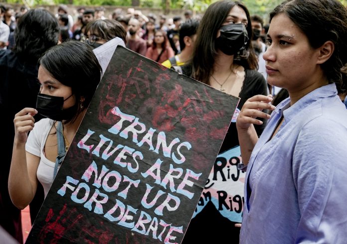 New Delhi: Supporters of the LGBTQIA+ community during a protest against the passage of the Transgender Persons (Protection of Rights) Amendment Bill, 2026, at Jantar Mantar in New Delhi, Sunday, March 29, 2026. (PTI Photo/Salman Ali)(PTI03_29_2026_000070B)