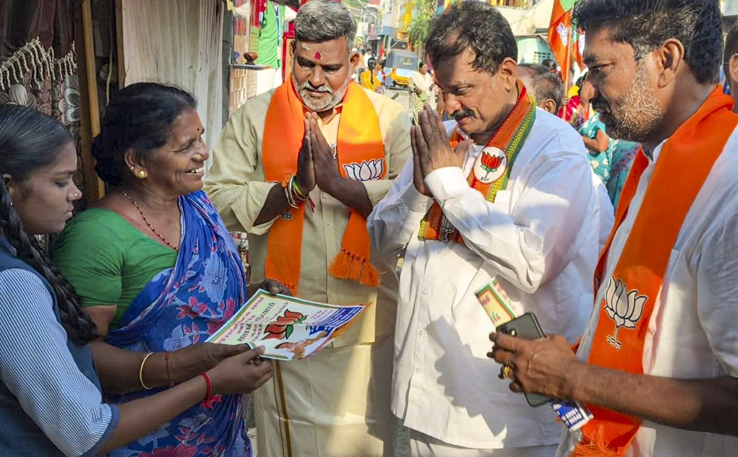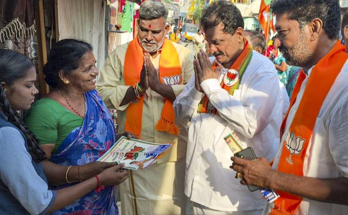Puducherry: BJP candidate from Muthialpet constituency, A. John Kumar, campaigns for Puducherry Assembly elections, Thursday, March 26, 2026. (PTI Photo) (PTI03_26_2026_000207B)