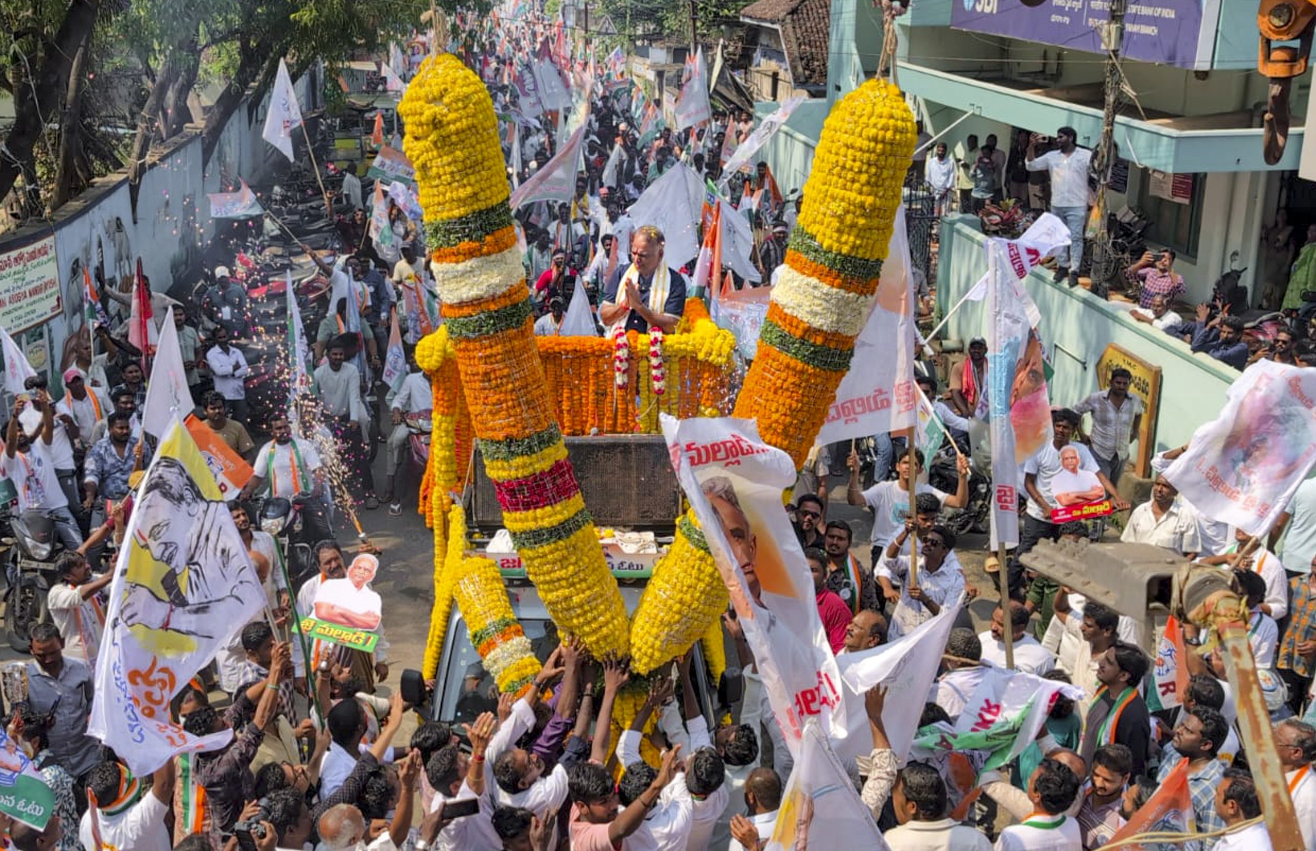 Puducherry: Congress candidate from Muthialpet constituency, Malladi Krishna Rao, during a rally for Puducherry Assembly elections, Thursday, March 26, 2026. (PTI Photo) (PTI03_26_2026_000208B)