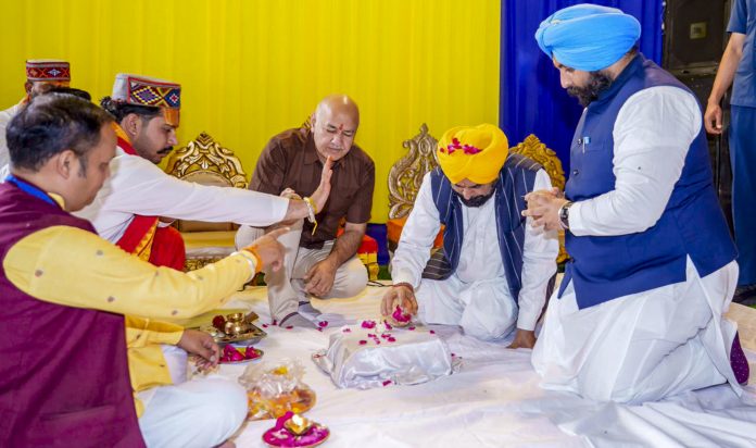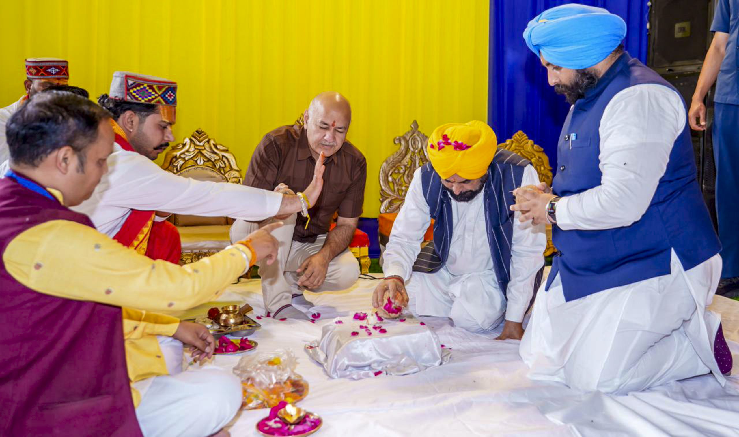 **EDS: THIRD PARTY IMAGE** In this image posted on March 31, 2026, Punjab Chief Minister Bhagwant Singh Mann lays the foundation stones for various developmental projects, at Nangal, in Rupnagar district, Punjab. AAP leader Manish Sisodia is also present. (@AAPPunjab/X via PTI Photo)(PTI03_31_2026_000283B)