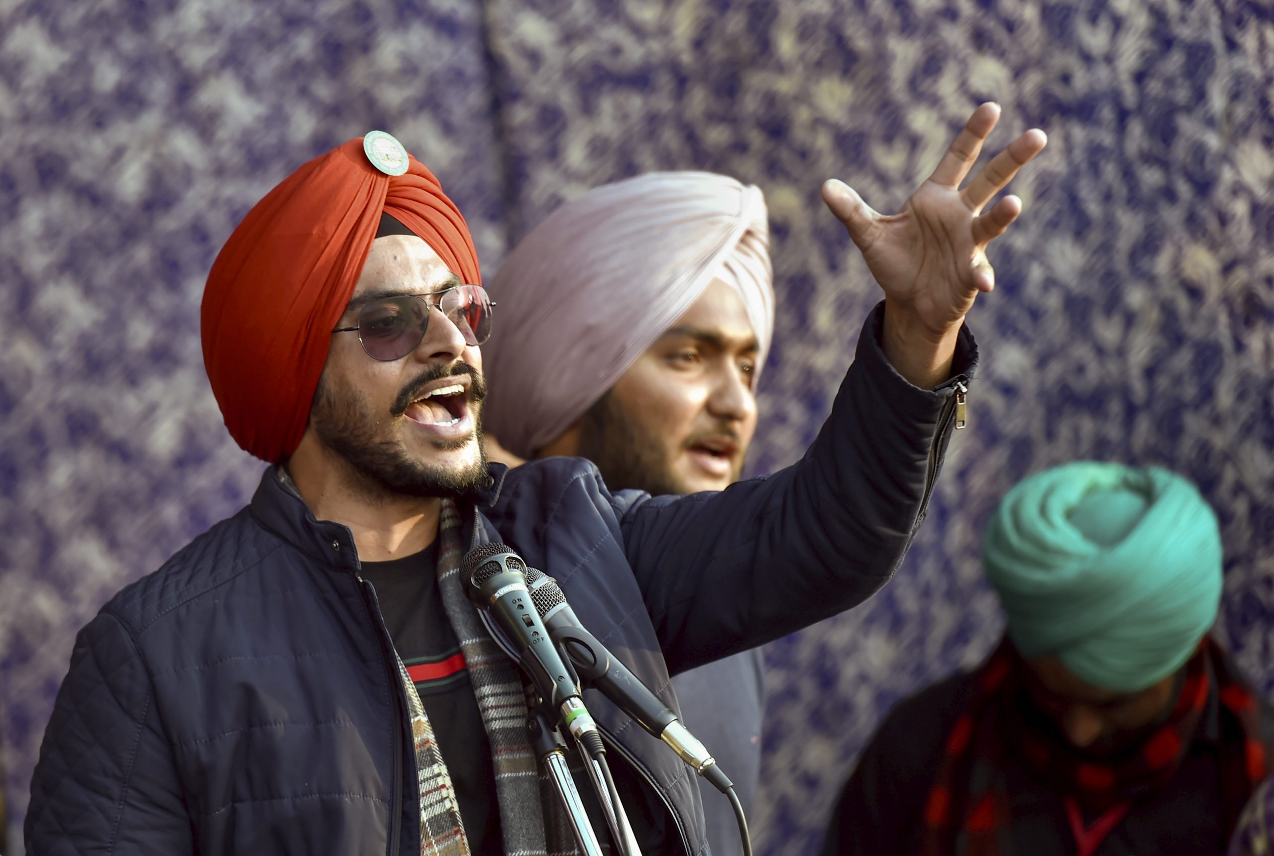 **EDS: FILE IMAGE** New Delhi: In this Thursday, Dec. 24, 2020 file photo, Punjabi singer Rajvir Jawanda, front, during the farmers' protest at Ghazipur border, in New Delhi. Jawanda died at the age of 35 in Chandigarh on Wednesday, 11 days after he was seriously injured in a road accident in Himachal Pradesh's Solan district. (PTI Photo/Ravi Choudhary) (PTI10_08_2025_000141B)