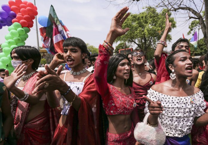 Prayagraj: People from the LGBTQ+ community take part in Queer Pride Parade on International Transgender Day of Visibility, in Prayagraj, Uttar Pradesh, Tuesday, March 31, 2026. (PTI Photo)(PTI03_31_2026_000110B)