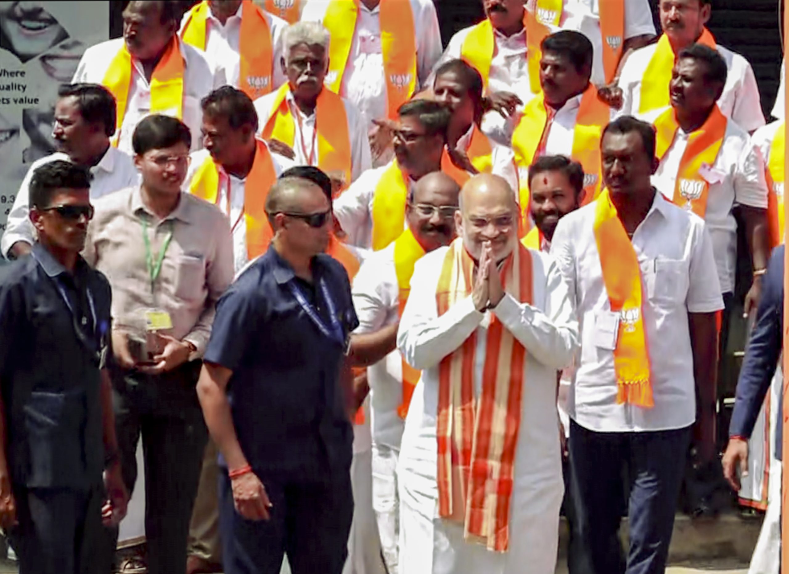 **EDS: SCREENSHOT VIA PTI VIDEOS** Puducherry: Union Home Minister Amit Shah arrives to attend a public meeting, in Karaikal, Puducherry, Saturday, Feb. 14, 2026. (PTI Photo)(PTI02_14_2026_000152B)