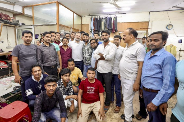 **EDS: THIRD PARTY IMAGE** In this image released by @INCIndia via X on Friday, April 12, 2025, Leader of Opposition in the Lok Sabha Rahul Gandhi meets young textile designers. (@INCIndia via PTI Photo) (PTI04_12_2025_000063B) *** Local Caption ***