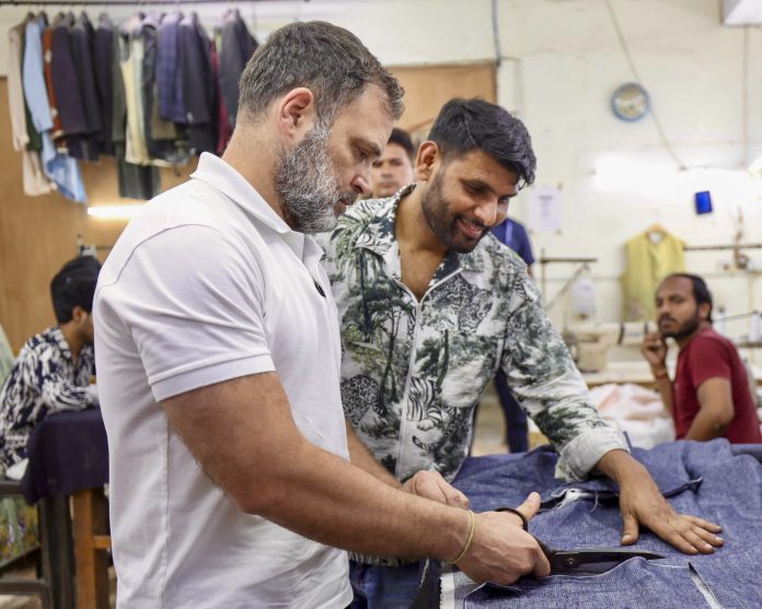 **EDS: THIRD PARTY IMAGE** In this image released by @INCIndia via X on Friday, April 12, 2025, Leader of Opposition in the Lok Sabha Rahul Gandhi meets young textile designers. (@INCIndia via PTI Photo) (PTI04_12_2025_000065B) *** Local Caption ***