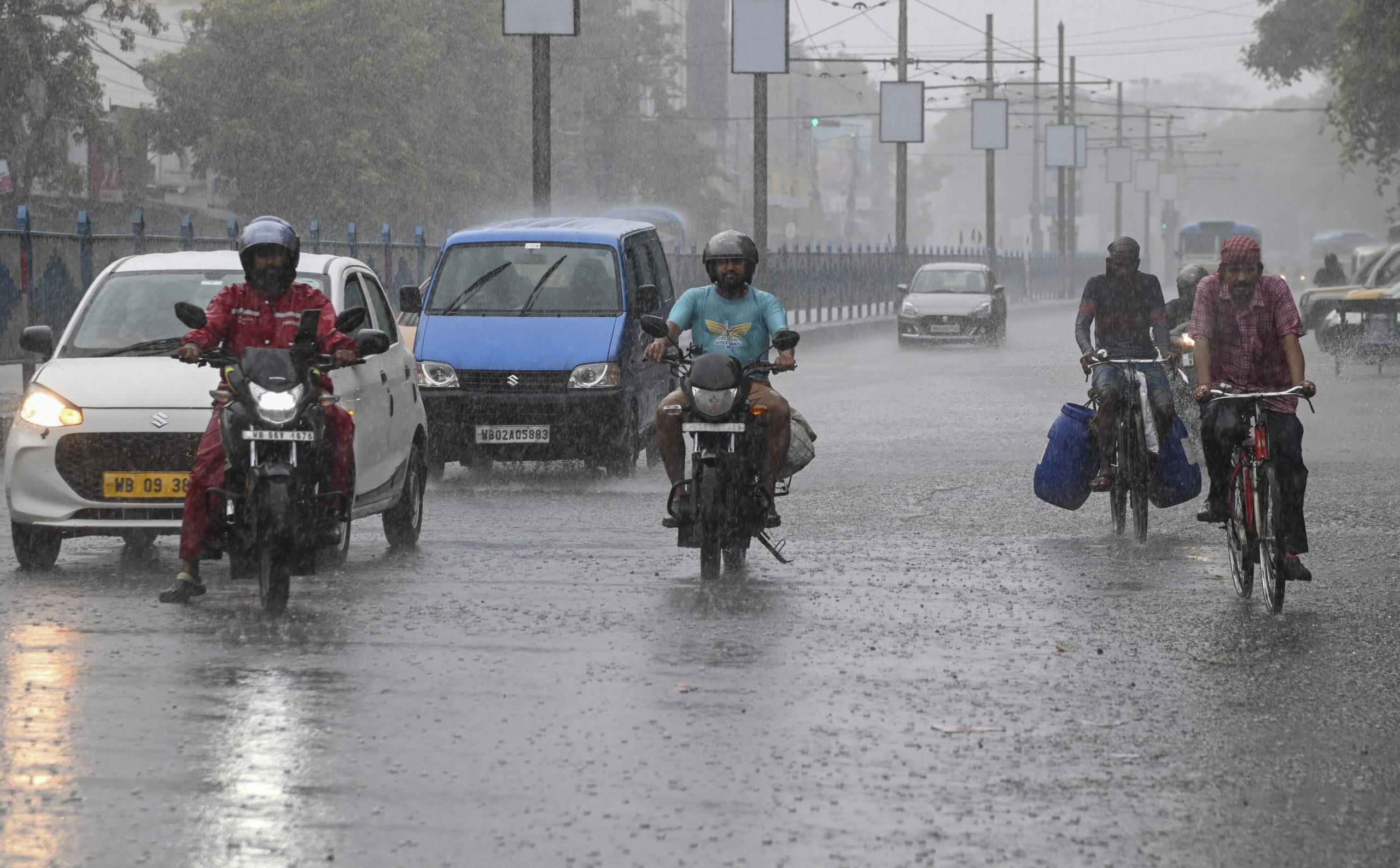 Kolkata: Commuters amid rainfall, in Kolkata, Sunday, May 18, 2025. (PTI Photo) (PTI05_18_2025_000371B)