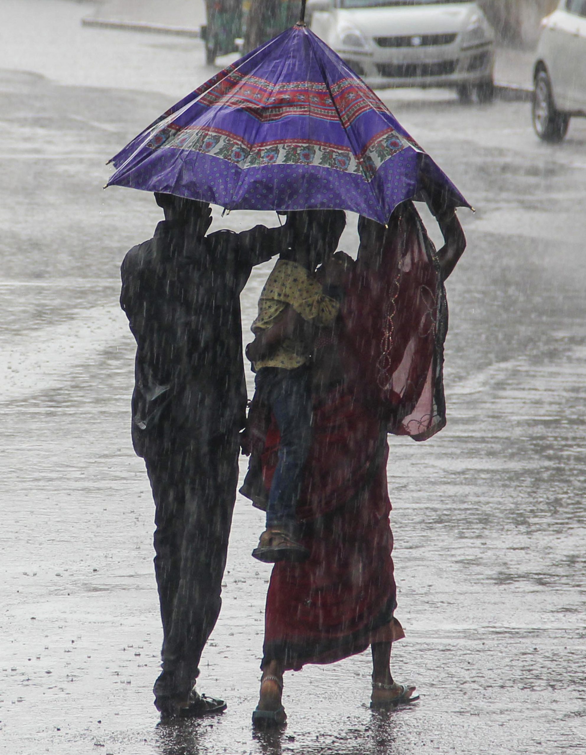 Gurugram: Pedestrians amid rainfall, in Gurugram, Monday, May 5, 2025. (PTI Photo) (PTI05_05_2025_000179B)
