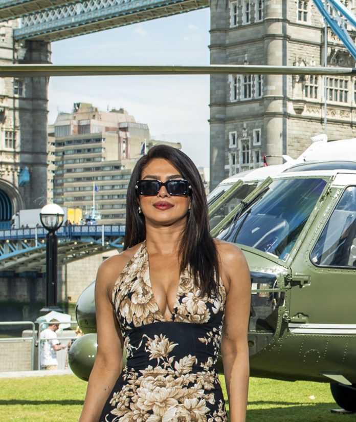 **EDS: THIRD PARTY IMAGE** In this handout image received on July 4, 2025, actor Priyanka Chopra at the photocall of Prime Video movie ‘Heads of State’, in London. (Handout via PTI Photo) (PTI07_04_2025_000223B)