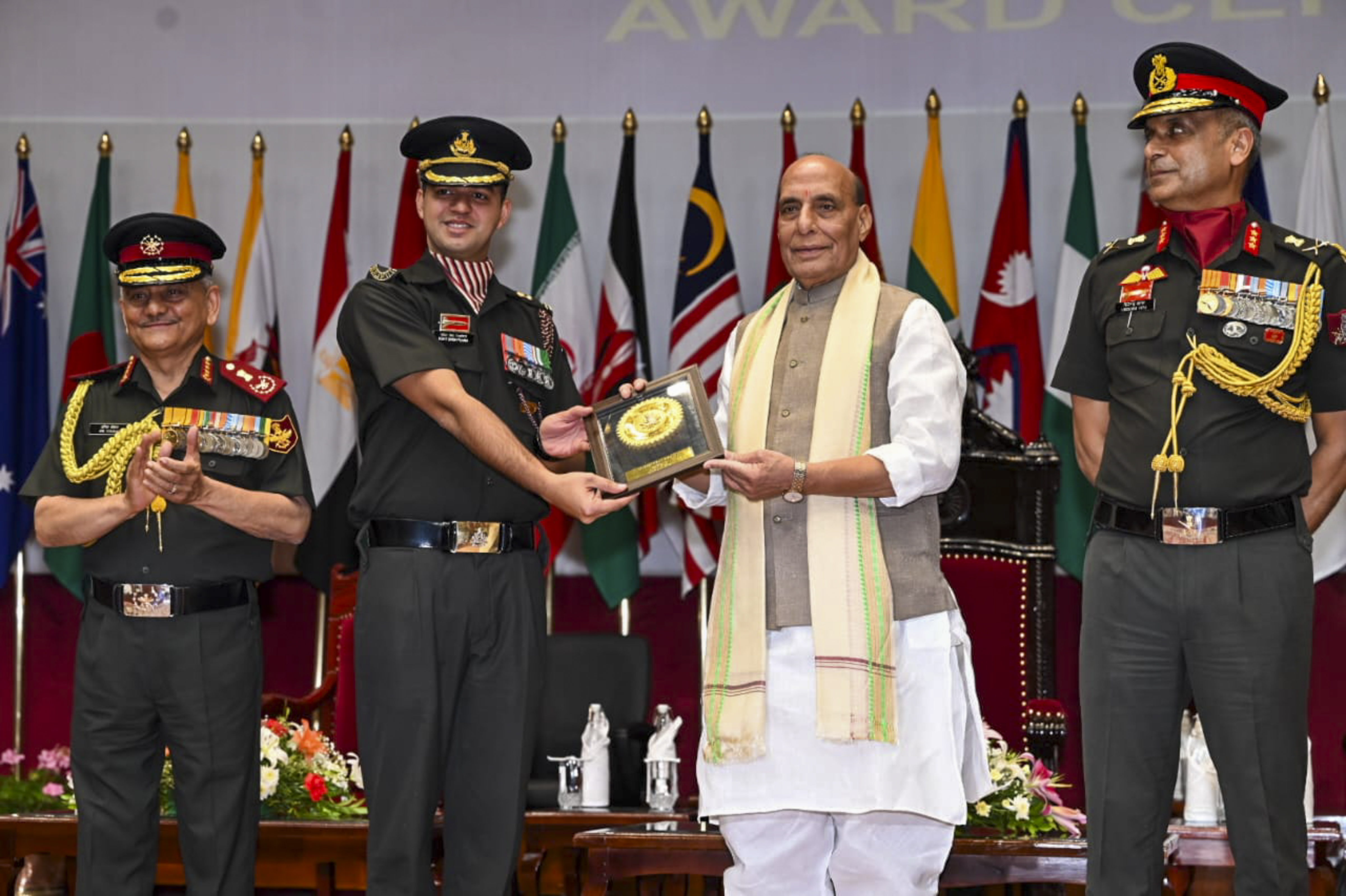 **EDS: THIRD PARTY IMAGE** In this image released by @HQ_IDS_India via X on April 10, 2025, Defence Minister Rajnath Singh during Convocation Ceremony of 80th Staff Course at Defence Services Staff College, at Wellington in Nilgiris district of Tamil Nadu. (@HQ_IDS_India on X via PTI Photo) (PTI04_10_2025_000139B)