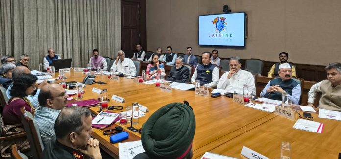 **EDS: THIRD PARTY IMAGE** In this image received on March 25, 2026, Union Defence Minister Rajnath Singh chairs a meeting of the Parliamentary Consultative Committee for the Ministry of Defence on Border Roads Organisation (BRO), in New Delhi. Chief of Defence Staff (CDS) General Anil Chauhan is also seen. (PIB via PTI Photo) (PTI03_25_2026_000331B)