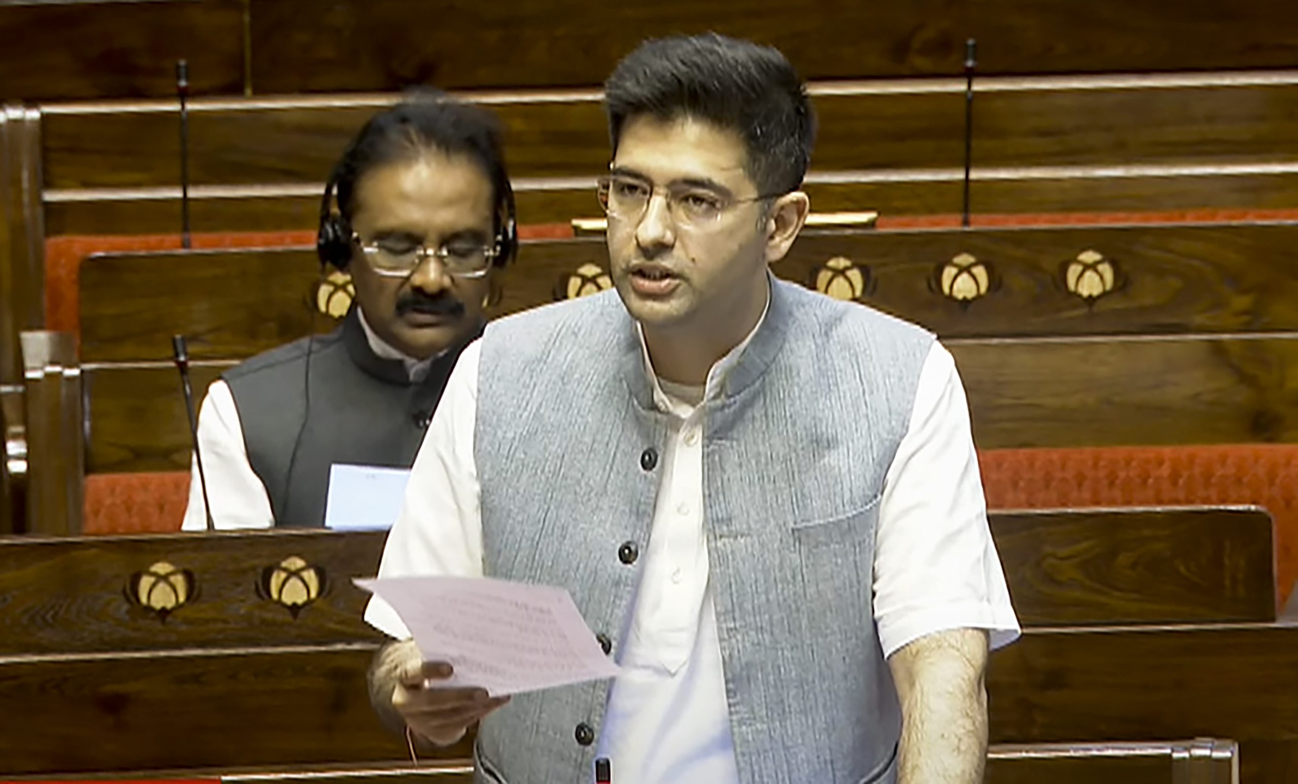 **EDS: THIRD PARTY IMAGE; SCREENGRAB VIA SANSAD TV** New Delhi: AAP MP Raghav Chadha speaks in the Rajya Sabha during the Monsoon session of Parliament, in New Delhi, Wednesday, Aug. 20, 2025. (Sansad TV via PTI Photo)(PTI08_20_2025_000226B)