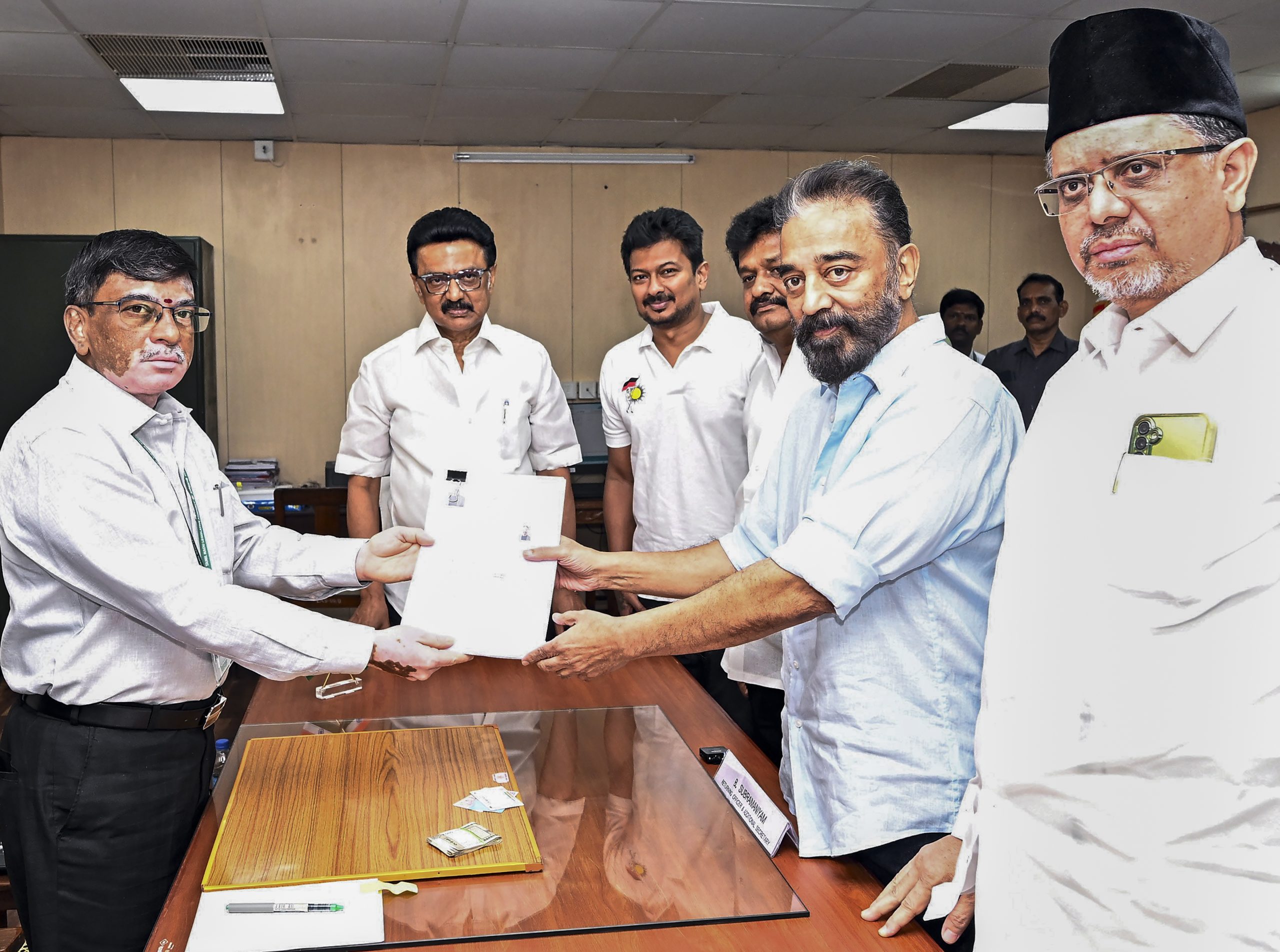 Haasan, in the presence of Chief Minister MK Stalin, Deputy CM Udhayanidhi Stalin and leaders of his party, signed and presented the papers to officials at the Secretariat here. PTI VGN VGN ROH