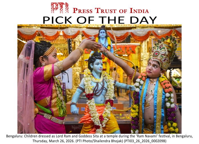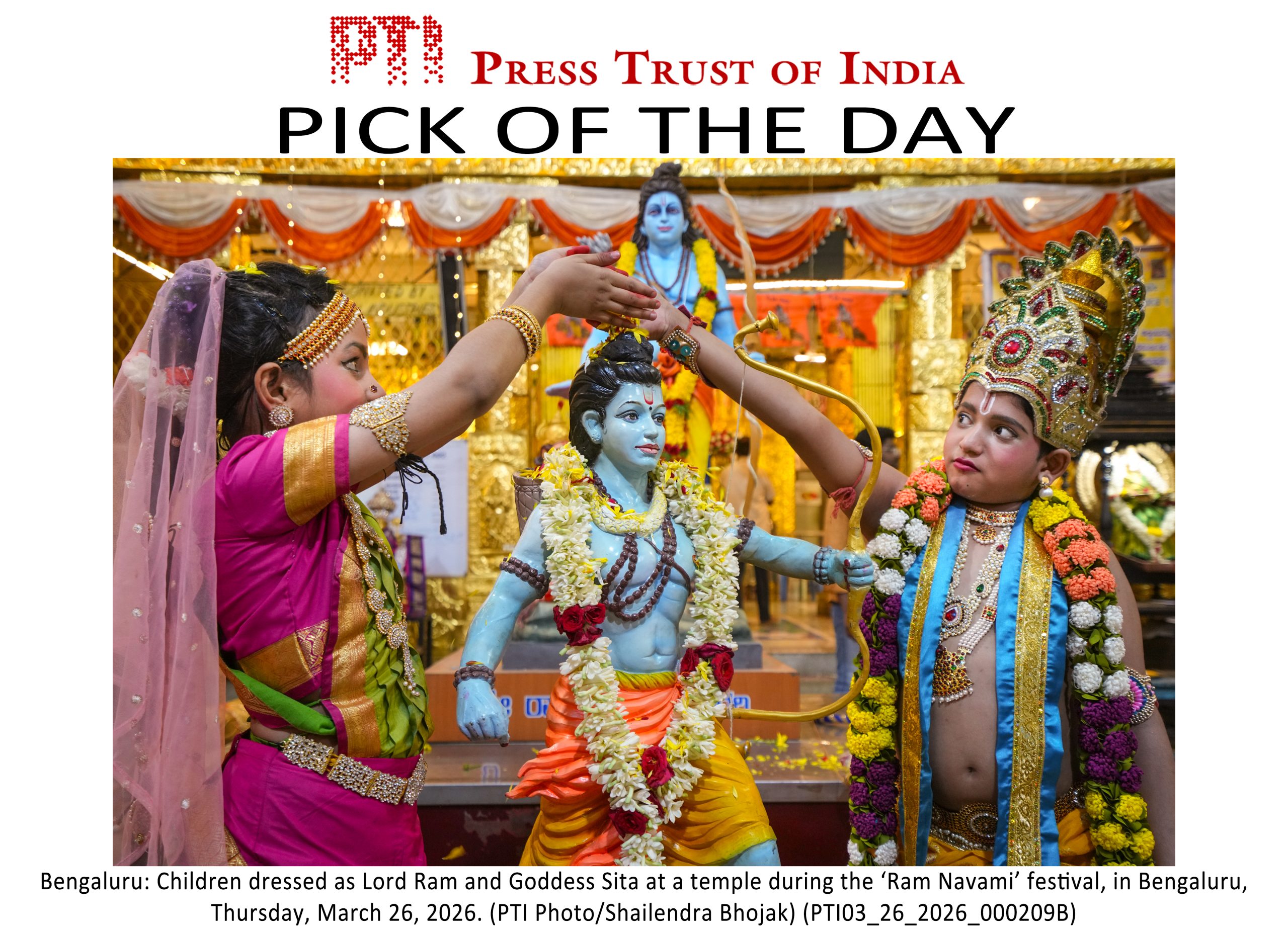 PLS TAKE NOTE OF THIS PTI PICK OF THE DAY::: Bengaluru: Children dressed as Lord Ram and Goddess Sita at a temple during the �Ram Navami� festival, in Bengaluru, Thursday, March 26, 2026. (PTI Photo/Shailendra Bhojak) (PTI03_26_2026_000209B)(PTI03_26_2026_000329B)