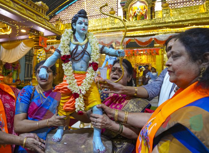 Bengaluru: Devotees carry an idol of Lord Ram during the �Ram Navami� festival, in Bengaluru, Thursday, March 26, 2026. (PTI Photo/Shailendra Bhojak) (PTI03_26_2026_000210B)