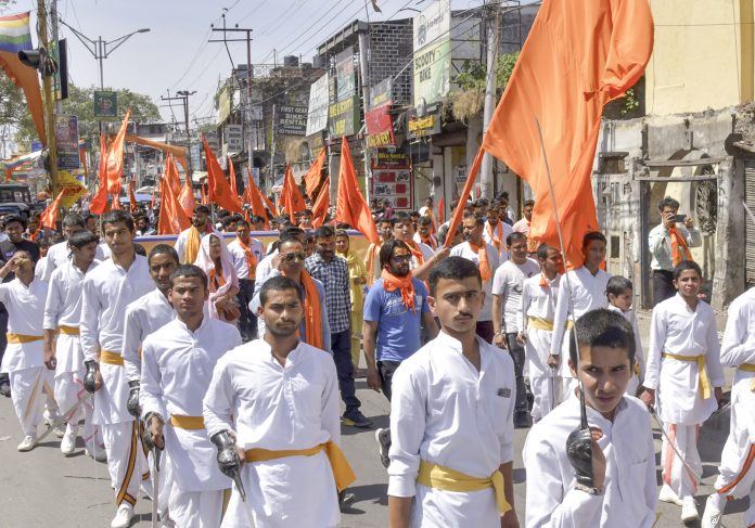 Dehradun: Devotees take part in a religious procession organised by Veer Savarkar Organization during the �Rama Navami� festival, in Dehradun, Thursday, March 26, 2026. (PTI Photo) (PTI03_26_2026_000216B)