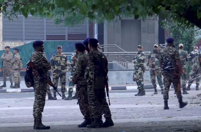 **EDS: GRAB VIA PTI VIDEOS** New Delhi: Tight security arrangements near the National Investigation Agency (NIA) headquarters, in New Delhi, Friday, Apr. 11, 2025. The NIA on Friday took Mumbai attacks mastermind Tahawwur Hussain Rana into 18-day custody, during which he will be questioned in detail to unravel the complete conspiracy behind the deadly 26/11 terror strike. (PTI Photo) (PTI04_11_2025_000029B)