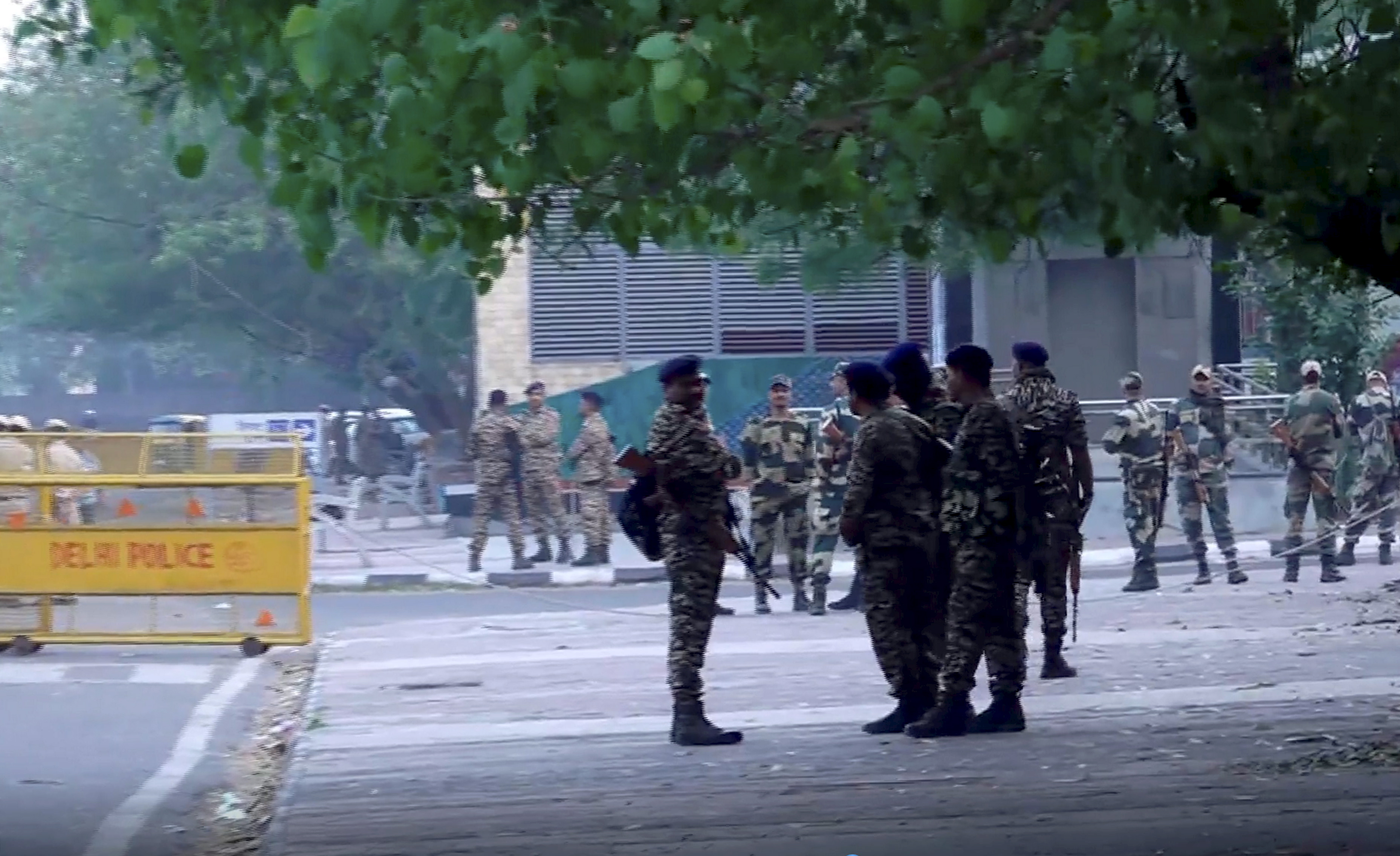 **EDS: GRAB VIA PTI VIDEOS** New Delhi: Tight security arrangements near the National Investigation Agency (NIA) headquarters, in New Delhi, Friday, Apr. 11, 2025. The NIA on Friday took Mumbai attacks mastermind Tahawwur Hussain Rana into 18-day custody, during which he will be questioned in detail to unravel the complete conspiracy behind the deadly 26/11 terror strike. (PTI Photo) (PTI04_11_2025_000030B)