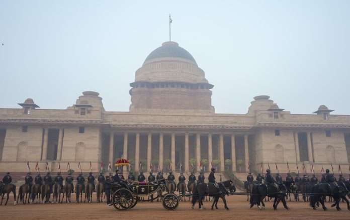 New Delhi: President's Bodyguard personnel during a rehearsal for the Republic Day parade, at Rashtrapati Bhavan, in New Delhi, Sunday, Jan. 11, 2026. (PTI Photo/Shahbaz Khan)(PTI01_11_2026_000022B)