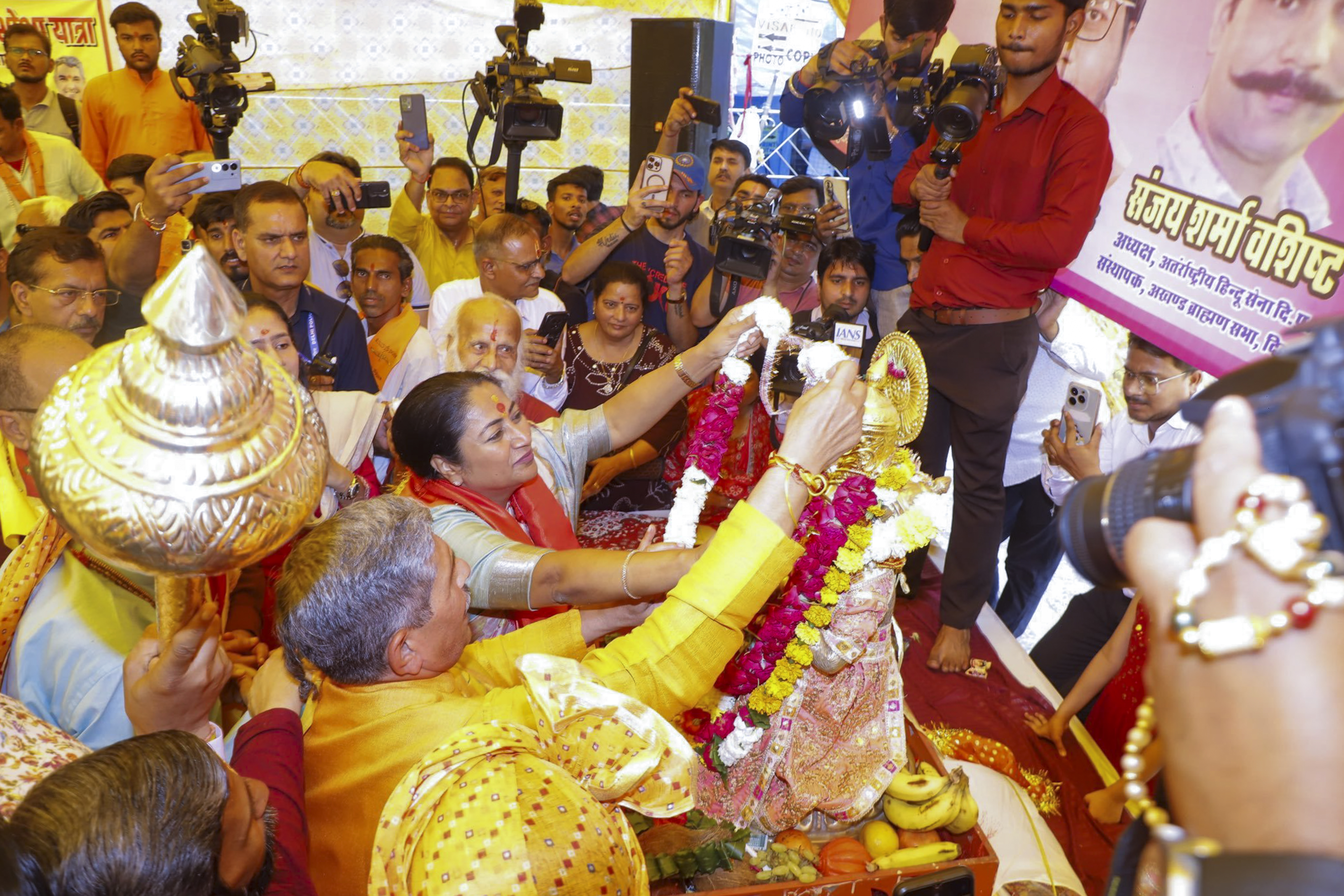 **EDS: THIRD PARTY IMAGE** In this image released by @BJP4Delhi via X on April 12, 2025, Delhi Chief Minister Rekha Gupta during a visit to Hanuman Temple on the occasion of Hanuman Jayanti, at Connaught Place, in New Delhi. (@BJP4Delhi via PTI Photo)(PTI04_12_2025_000284B)