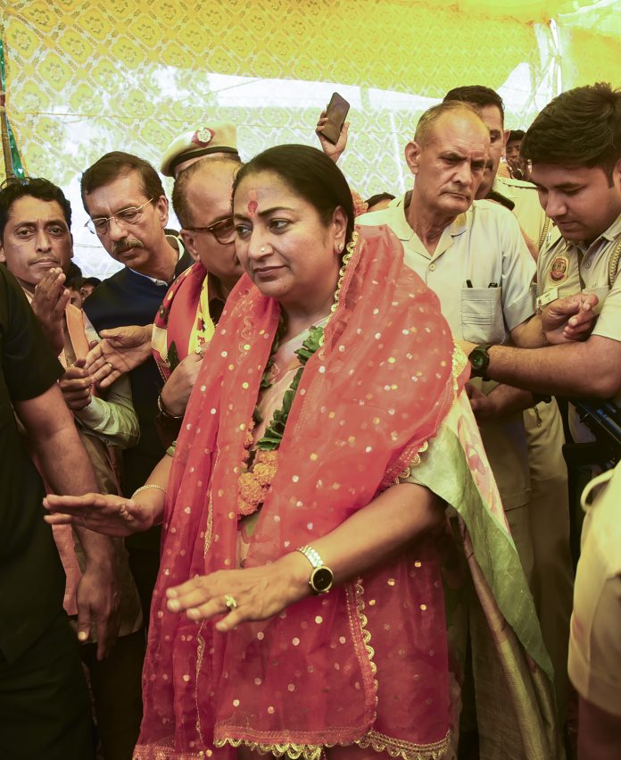 New Delhi: Delhi Chief Minister Rekha Gupta visits Hanuman Temple on the occasion of Hanuman Jayanti, at Connaught Place, in New Delhi, Saturday, April 12, 2025. (PTI Photo)(PTI04_12_2025_000214B)