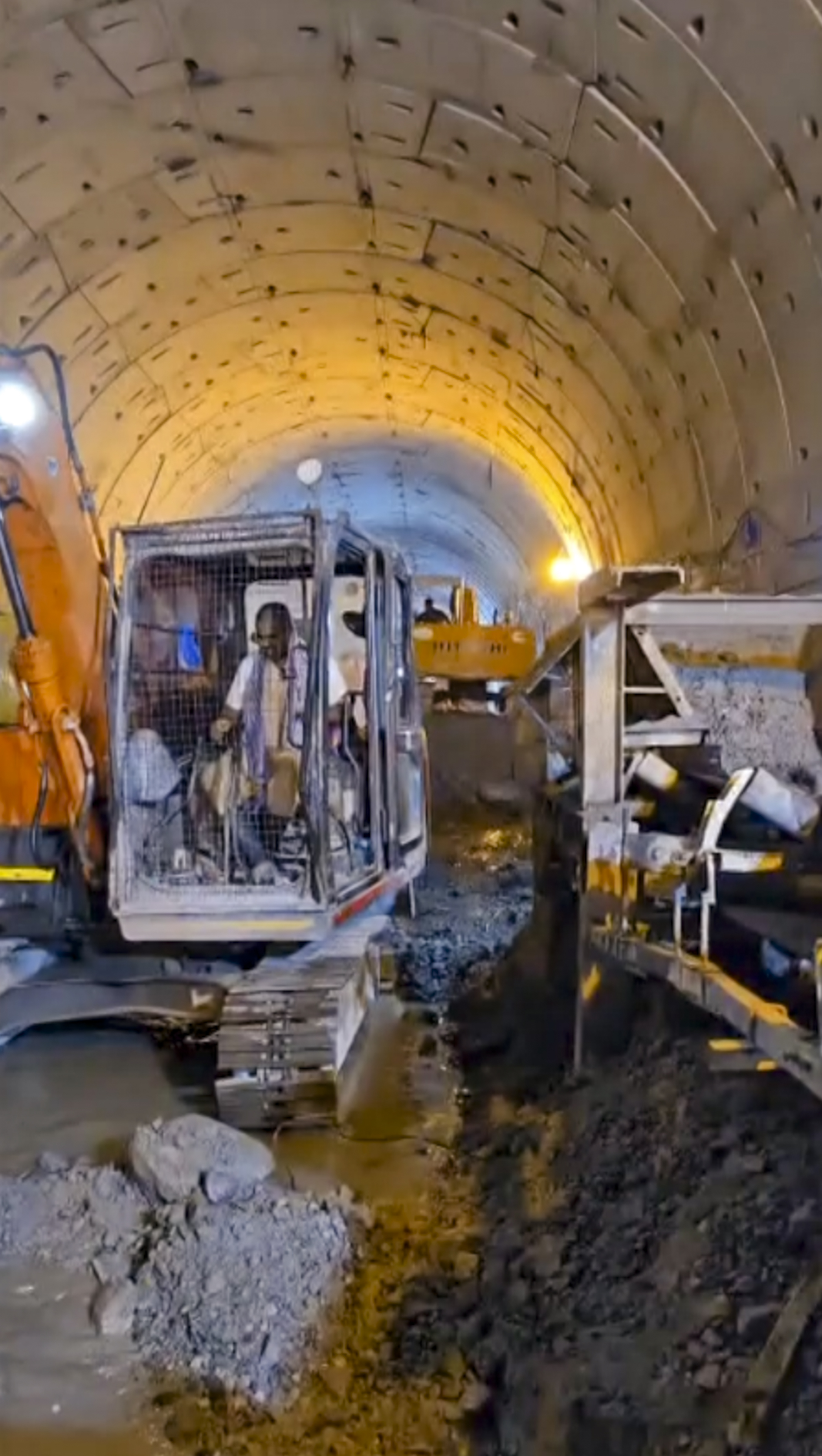 **EDS: SCREENSHOT VIA PTI VIDEOS** Nagarkurnool: Rescue operation underway to locate workers trapped inside the partially collapsed Srisailam Left Bank Canal (SLBC) project tunnel, in Nagarkurnool, Telangana, Tuesday, April 8, 2025. A total of eight individuals, including engineers and labourers, got trapped in the tunnel when a portion of it collapsed on February 22. (PTI Photo) (PTI04_08_2025_000422B)