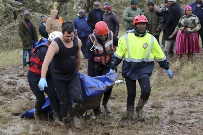 Cooperative Governance and Traditional Affairs Minister Velenkosini Hlabisa said the flooding around the town of Mthatha in southeastern South Africa was “a real disaster and a catastrophe when we have so many people dying.” (AP) RD RD