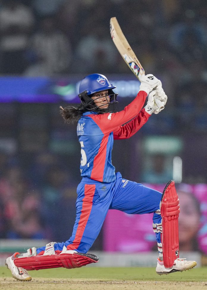 Vadodara: Delhi Capitals' captain Jemimah Rodrigues plays a shot during the Women's Premier League (WPL) 2026 final T20 cricket match between Delhi Capitals and Royal Challengers Bengaluru, at Baroda Cricket Association Stadium, Kotambi in Vadodara, Gujarat, Thursday, Feb. 5, 2026. (PTI Photo/Kunal Patil)(PTI02_05_2026_000399B)