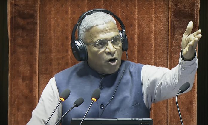 **EDS: THIRD PARTY IMAGE; SCREENGRAB VIA SANSAD TV** New Delhi: Rajya Sabha Deputy Chairman Harivansh Narayan Singh conducts proceedings in the House during the Monsoon session of Parliament, in New Delhi, Wednesday, July 23, 2025. (Sansad TV via PTI Photo)(PTI07_23_2025_000083B)