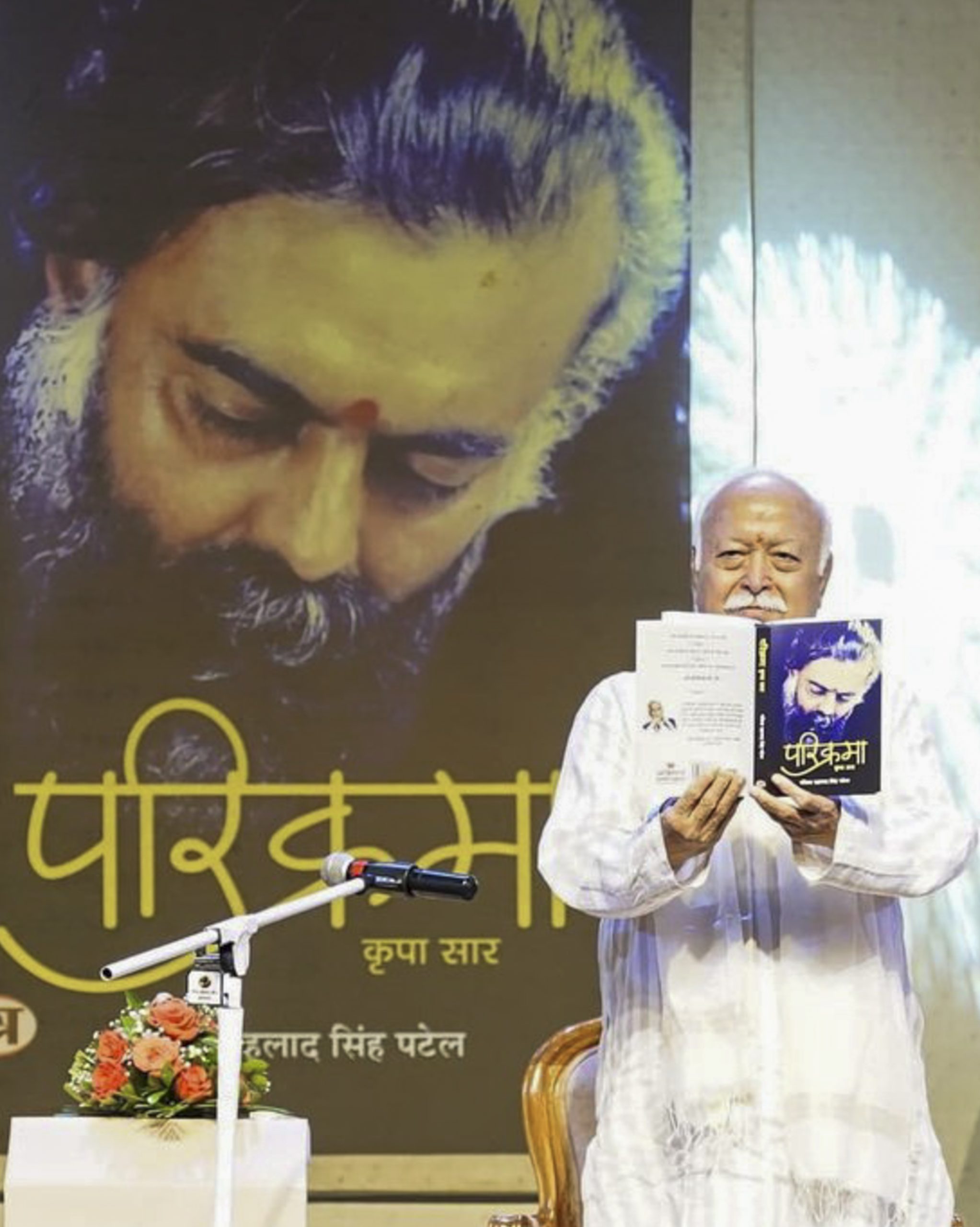 **EDS: THIRD PARTY IMAGE** In this image released on Sept. 14, 2025, Rashtriya Swayamsevak Sangh (RSS) chief Mohan Bhagwat during the release of Madhya Pradesh Minister Prahlad Singh Patel's book 'Parikrama Kripa Saar', in Indore. (@DrMohanYadav51/X via PTI Photo) (PTI09_14_2025_000561B)