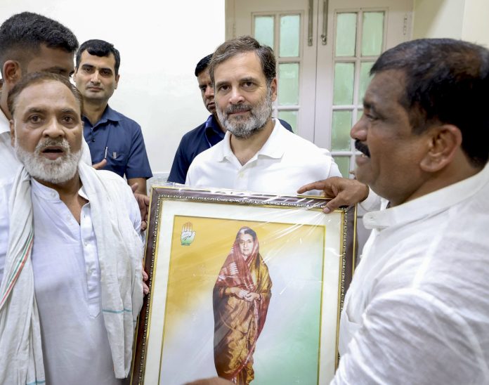 **EDS: THIRD PARTY** In this image via AICC, Leader of Opposition in Lok Sabha Rahul Gandhi being greeted by Congress workers and well-wishers on the occasion of his birthday, at the AICC headquarters, in New Delhi, Thursday, June 19, 2025. (PTI Photo) (PTI06_19_2025_000223B)