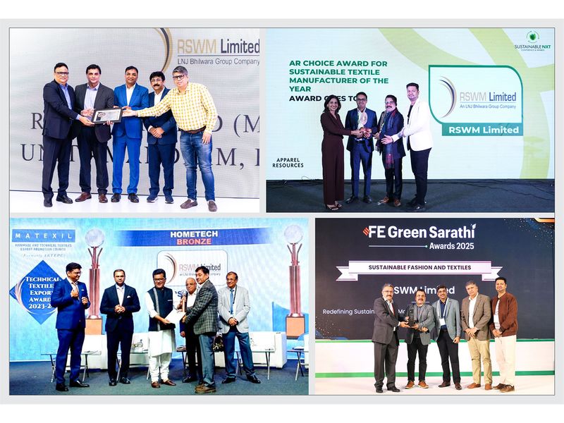 At the 3rd edition of SustainableNXT 2025, RSWM was conferred with the AR Choice Award for Sustainable Textile Manufacturer of the Year, recognizing its integrated approach to sustainability across materials, energy, water stewardship, waste reduction and ethical manufacturing processes.