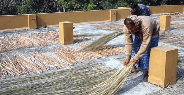 The yarn is given a detergent bath to remove the dust and grease attached in it thoroughly, it is usually soaked for 2-3 days and then washed several times till the foam is clear. The washed yarn is dried in the sun for two to three days.
