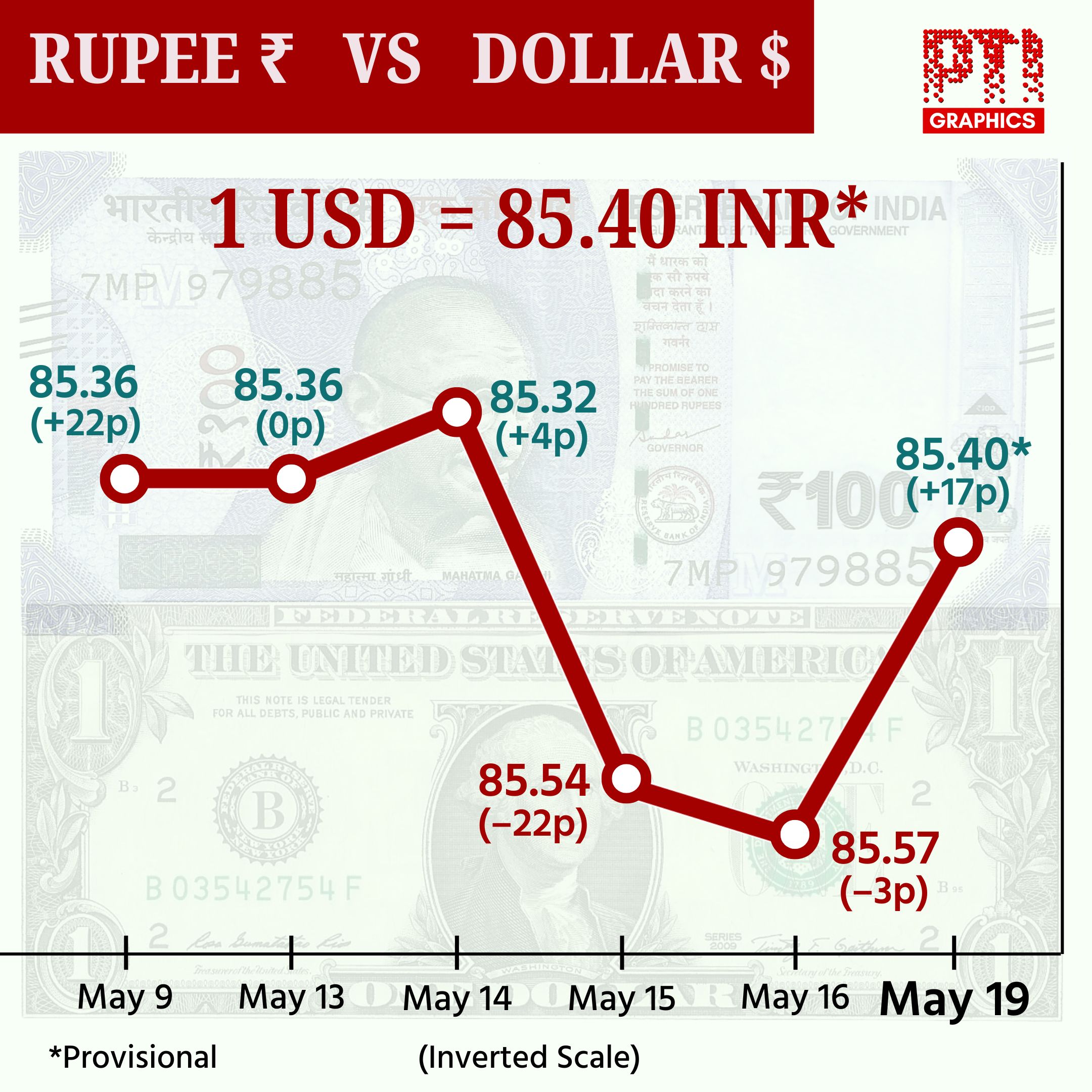 NEW DELHI: RUPEE VS DOLLAR. PTI GRAPHICS. (PTI05_19_2025_001010001B)