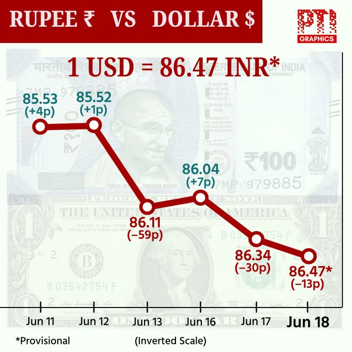 Moreover, elevated global crude oil prices and selling pressure from foreign investors also weighed on the local unit, they said, adding that the domestic markets are falling on risk aversion in the global markets amid the ongoing geopolitical tensions in the Middle East.