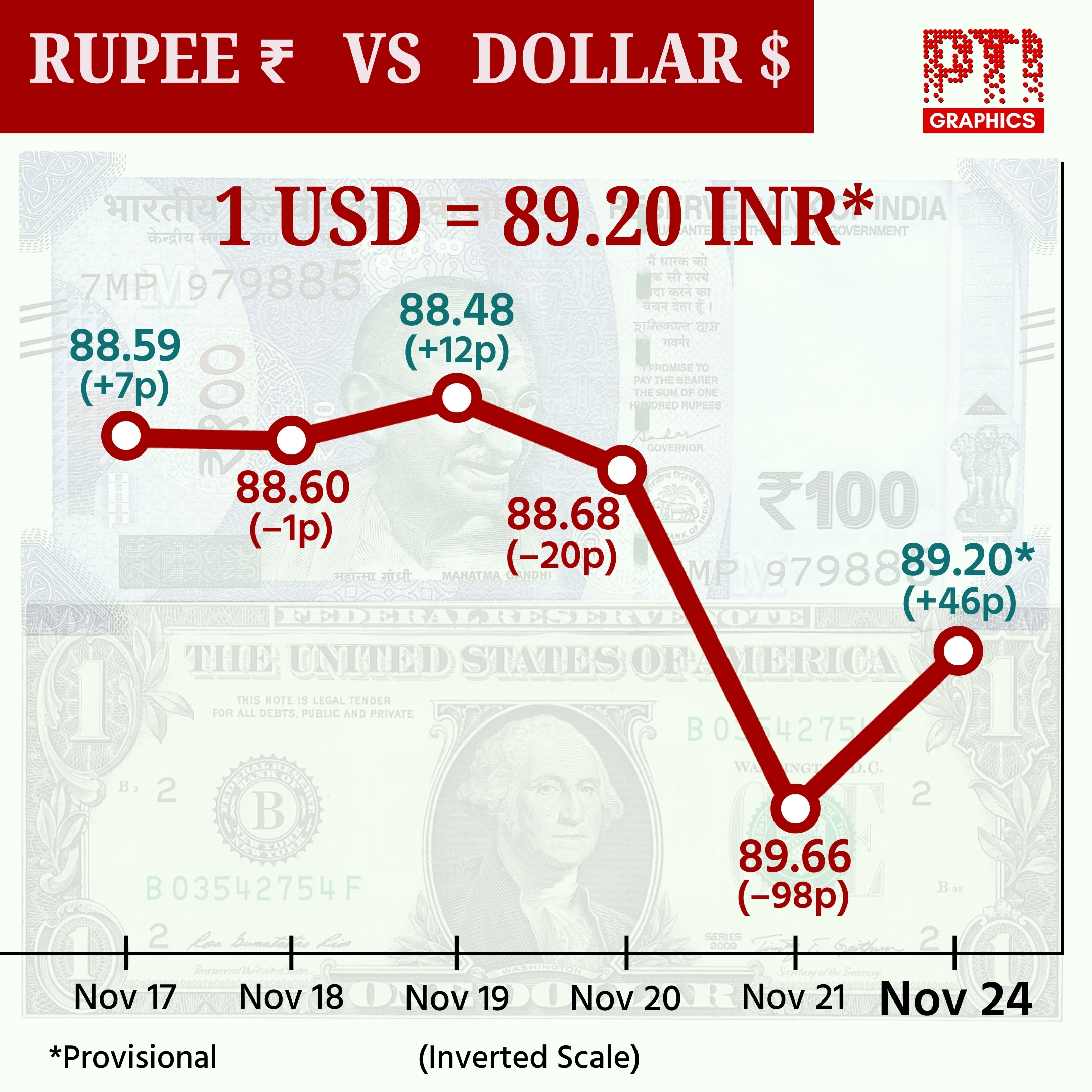 NEW DELHI: RUPEE VS DOLLAR. PTI GRAPHICS.(PTI11_24_2025_001010001B)