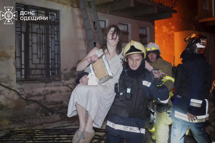 In the early hours of Monday, drones and missiles hit residential areas, hospitals and sports infrastructure in numerous districts across Kyiv, emergency services said, with the most severe damage occurring in the Shevchenkivskyi district, where one section of a five-story apartment building collapsed.