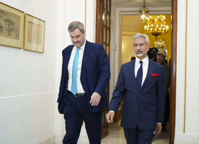 **EDS: THIRD PARTY IMAGE** In this image released by @DrSJaishankar via X on April 13, 2025, External Affairs Minister S. Jaishankar with Minister-President of Bavaria state of Germany Markus Soder during a meeting, in New Delhi. (@DrSJaishankar via PTI Photo)(PTI04_13_2025_000173B)