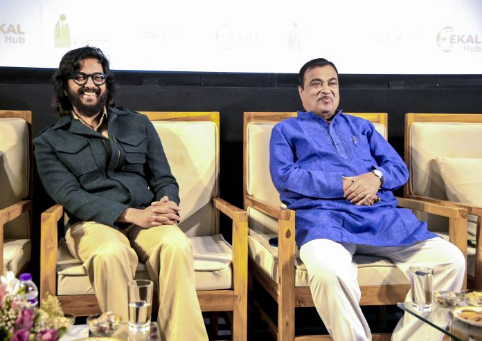 Nagpur: Union Minister Nitin Gadkari, right, with actor Riteish Deshmukh during the launch of Maharashtra's first 'EKAL Hub' by Cine Chourangi, in Nagpur, Maharashtra, Saturday, March 7, 2026. (PTI Photo)(PTI03_07_2026_000086B)