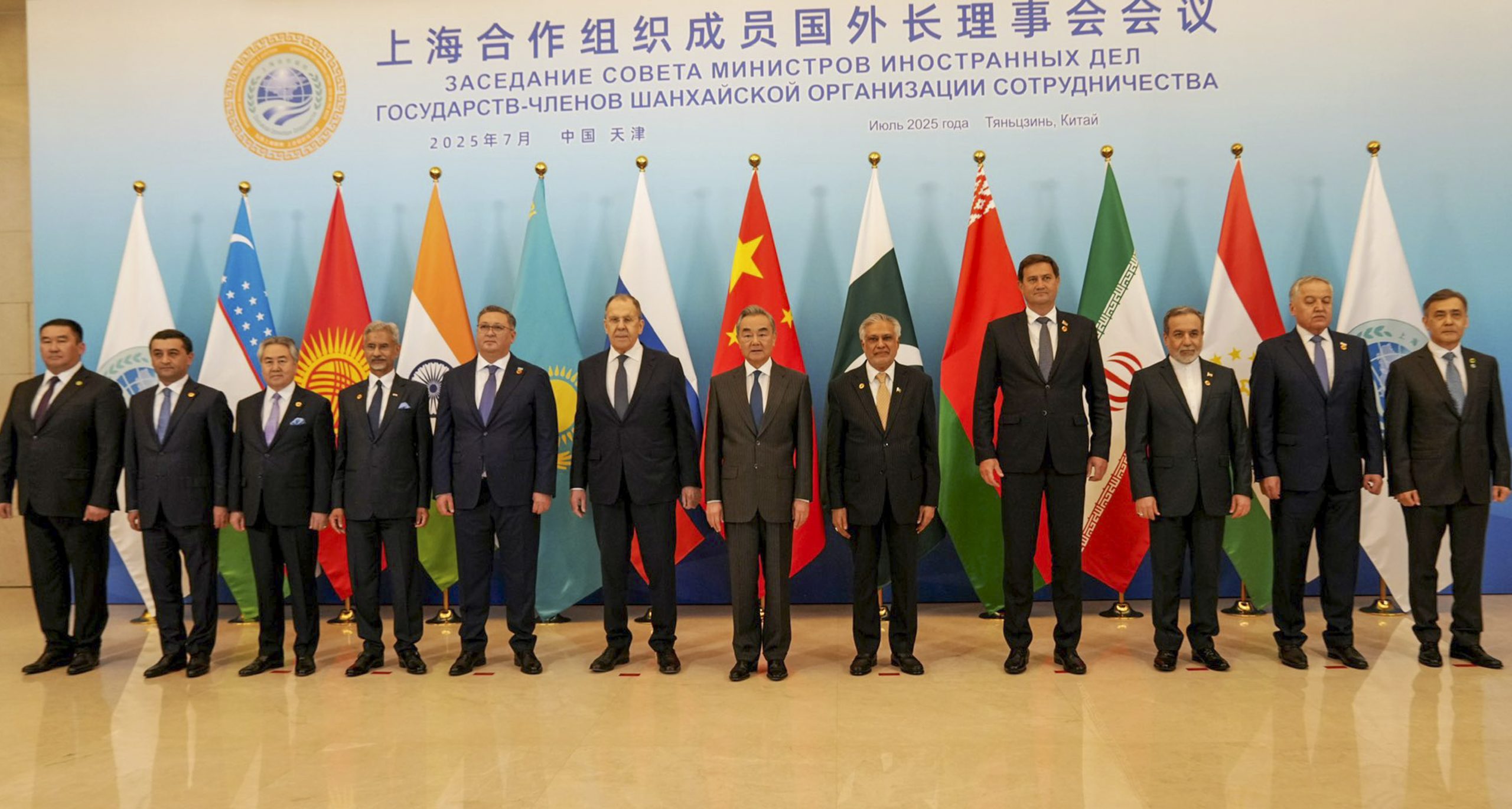 **EDS: THIRD PARTY IMAGE** In this image posted by @DrSJaishankar via X on July 15, 2025, External Affairs Minister S Jaishankar poses for group photograph with Foreign Ministers during the SCO Council of Foreign Ministers Meeting, in Tianjin, China. (@DrSJaishankar on X via PTI Photo) (PTI07_15_2025_000250B)